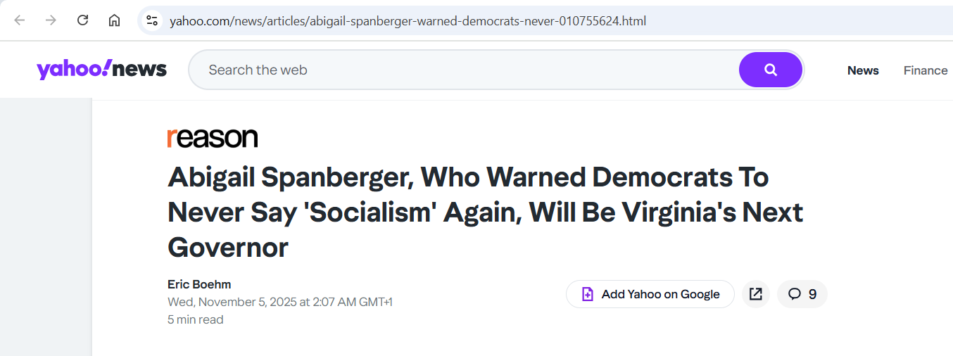 (37,807 posts)Spanberger isn't going to fight "Socialism".