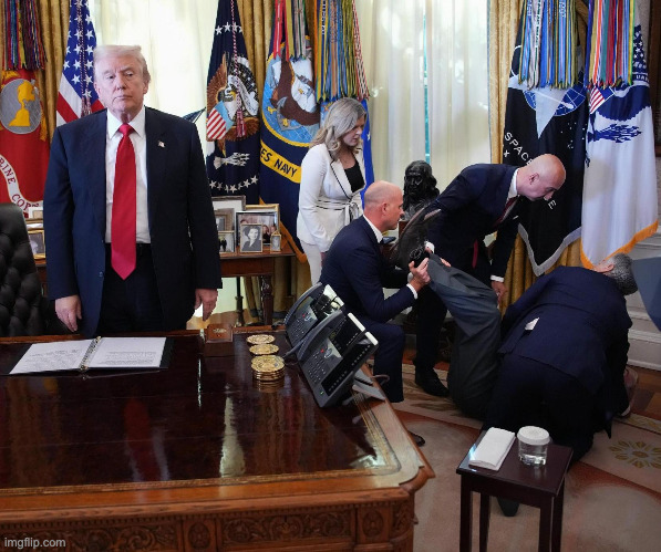 (112,088 posts)I'm just going to repost this photo from today and ponder "how much longer?" (I'm guessing he might be thinking that too, as he ignores the guy experiencing a medical event right behind him)...