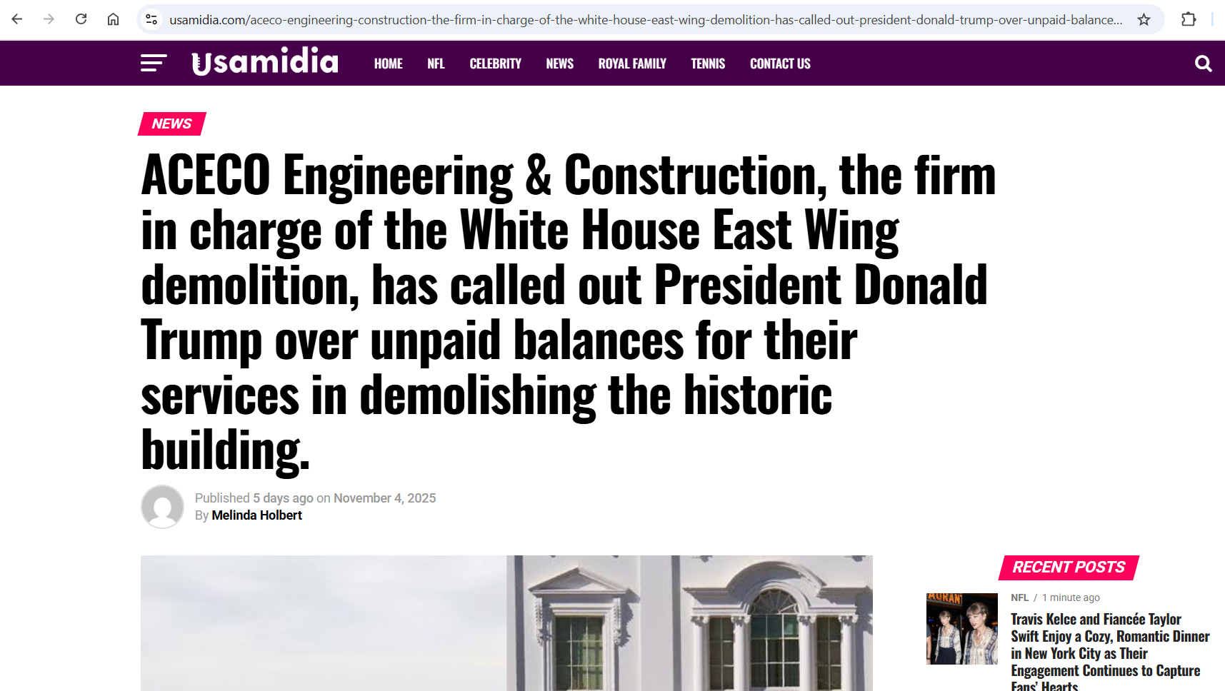 (128,249 posts)The demolition just occurred on October 23, only 2-1/2 weeks ago, and probably wouldn't have even been billed until Oct. 31 at the earliest. Big jobs like that typically are billed on the last day of the month in which the work was done, and the payment doesn't become past due until whatever period the contract designates elapses, probably 30 days. Trump regularly stiffs contractors, of course; but this job was probably billed to the government (allegedly to be "reimbursed" by the oligarchs), which takes even longer to pay.