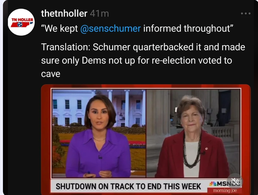 I just can't. Schumer has to go. Those 8 need to be removed from any leadership positions and committee leadership positions immediately. They can no longer be trusted to act with the best interest of the American people. They caved to their billionaire donors
