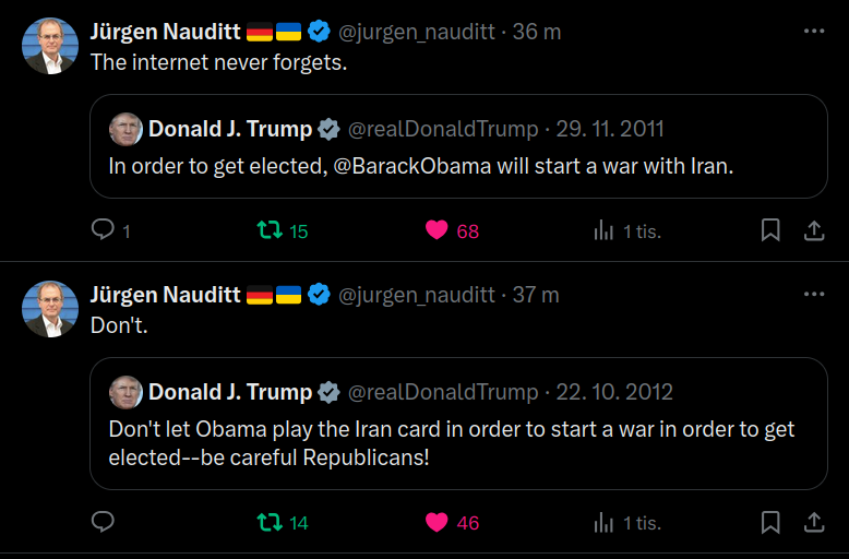 Then today, as the US bombed Iran, Trump posted: "Iran tried to interfere in 2020, 2024 elections to stop Trump, and now faces renewed war with United States."