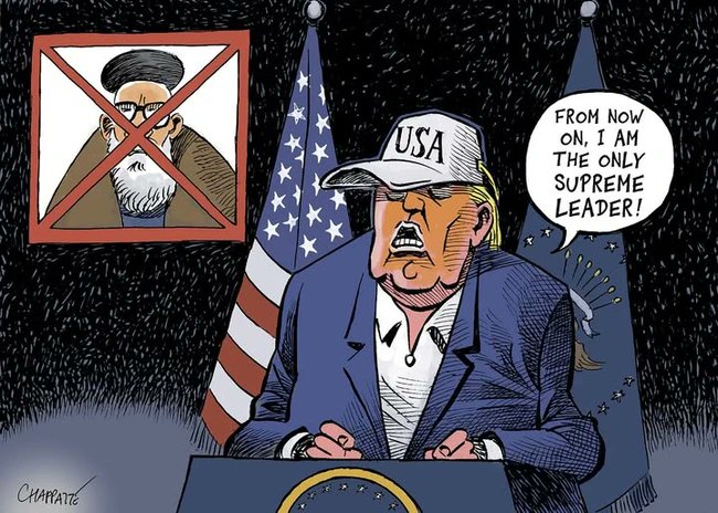 RUMP STRONGLY WALKS ROAD OF WAR IN IRAN