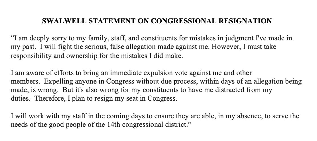 Swalwell announced his resignation in a statement posted to his X account, while still denying some of the allegations made against him in recent days.