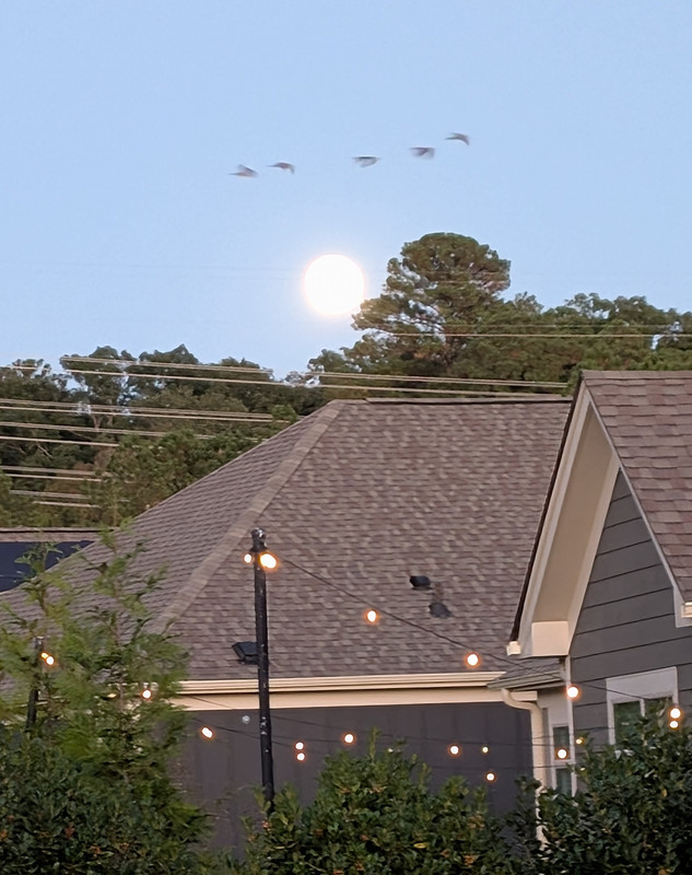 (32,909 posts)And there it was. I'm going out of town tomorrow and my camera battery was charging. So I grabbed my phone. Not the best, but I did catch a bonus of geese flying home for the night.