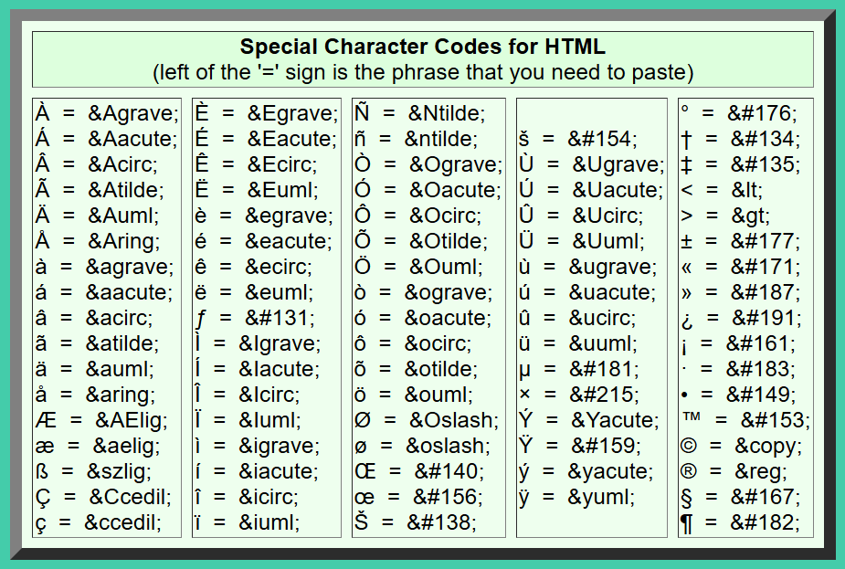 Special Character Codes for HTML (so you can correctly post in DU title spaces, examples: 'für' and 'Mätzler' ) Celerity 17 hrs ago #1