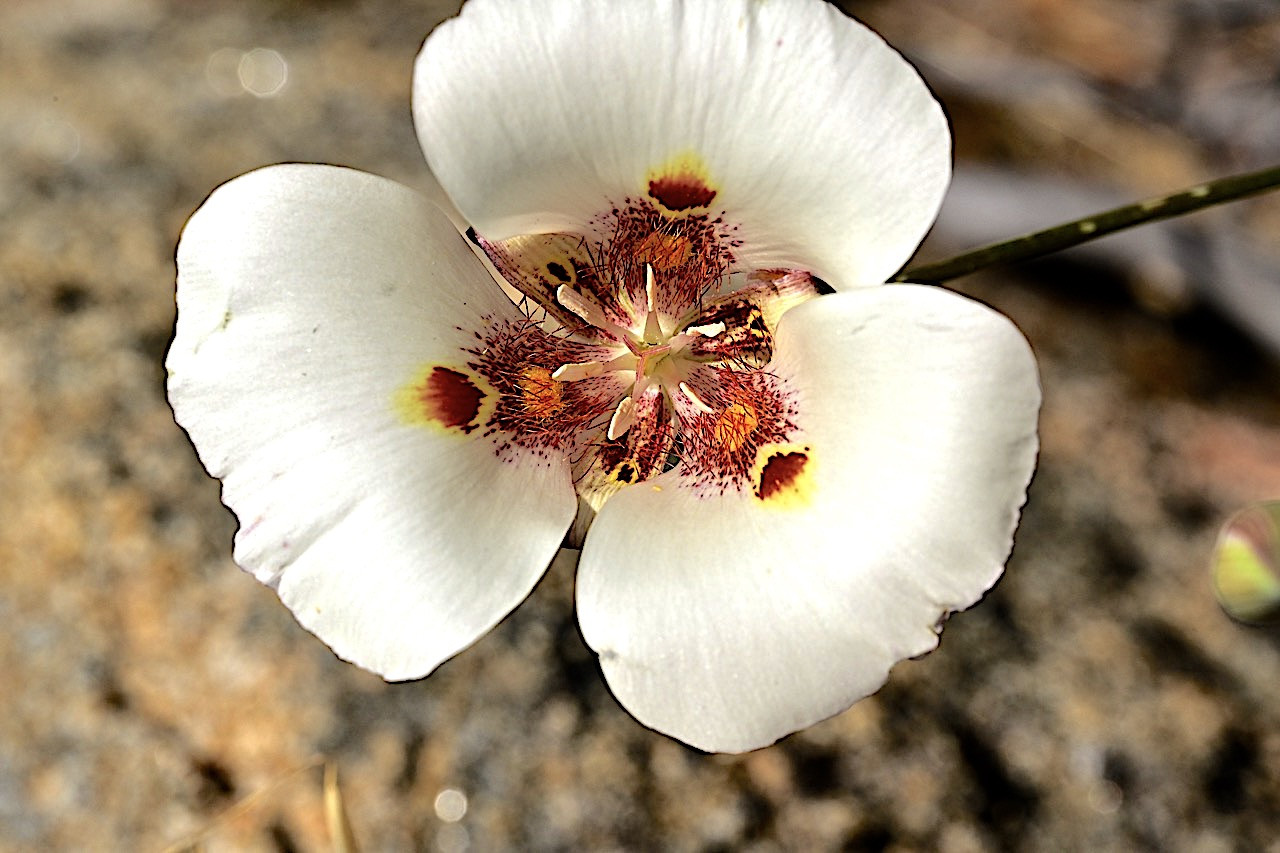 The genus Calochortus includes mariposas (or mariposa lilies) with open wedge-shaped petals, globe lilies and fairy lanterns with globe-shaped flowers, and cat's ears and star tulips with erect pointed petals. The word Calochortus is derived from Greek and means "beautiful grass".
