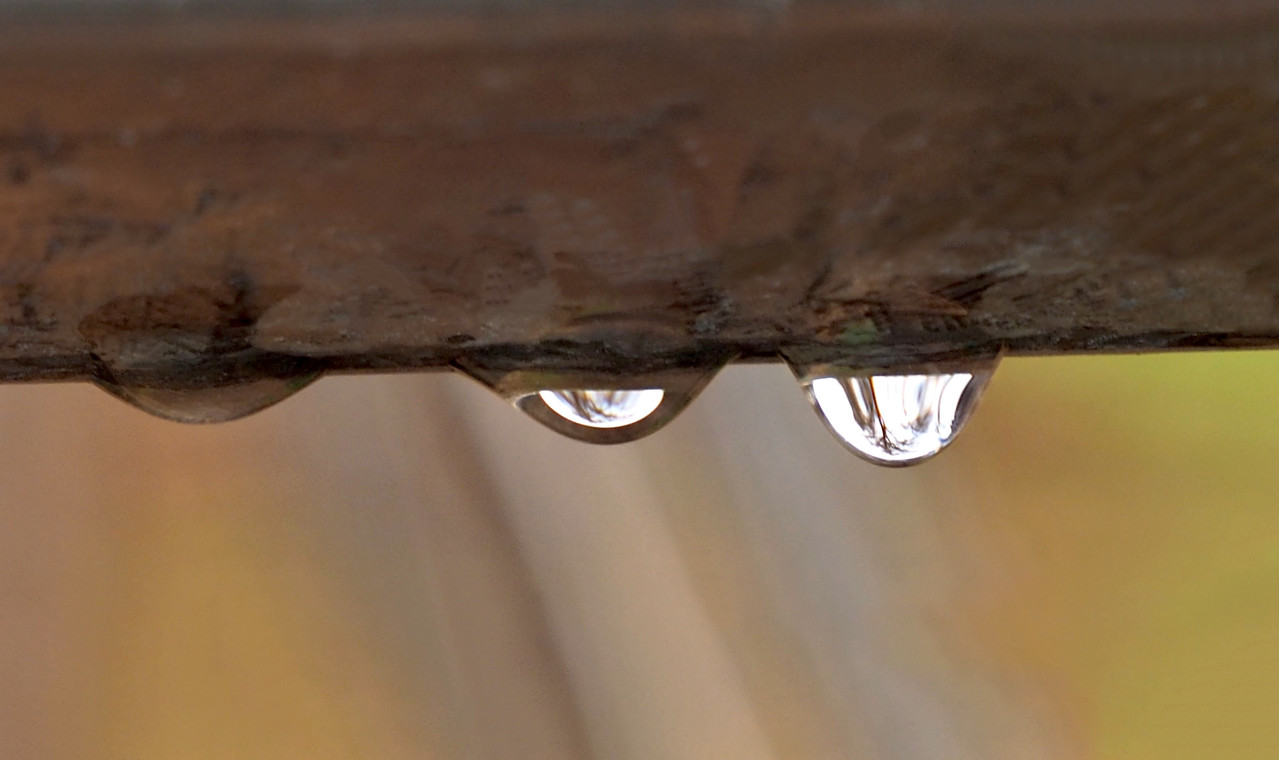 Water drops close up, on an old cattle panel. (Original Post)