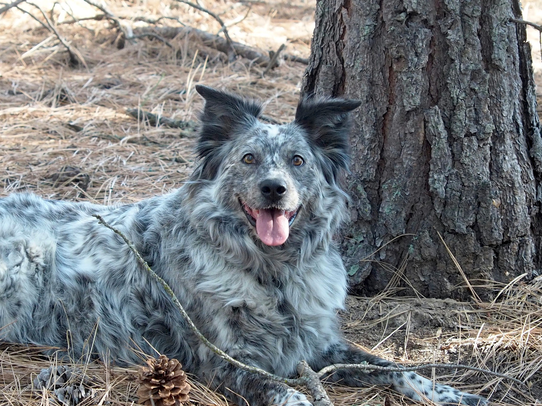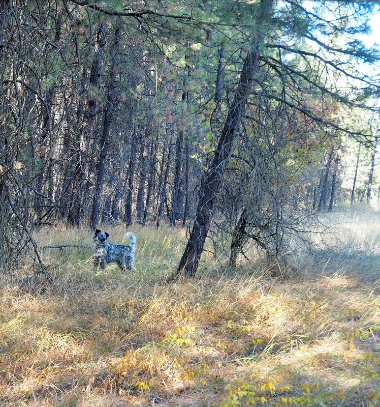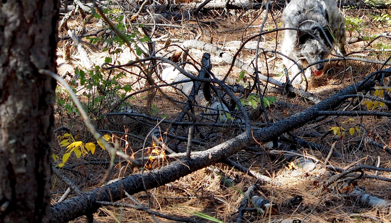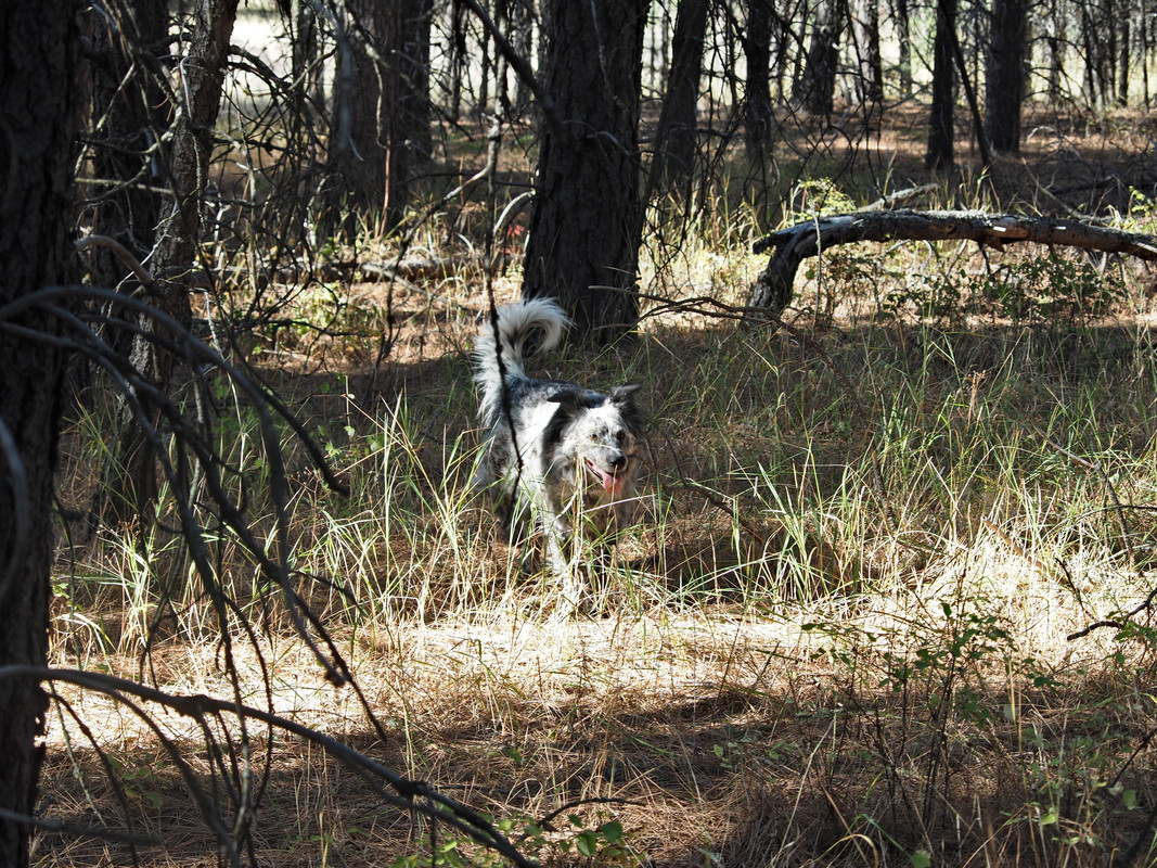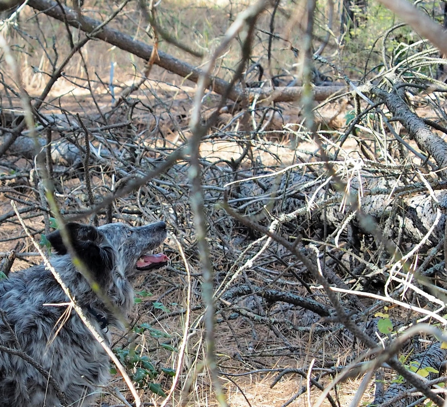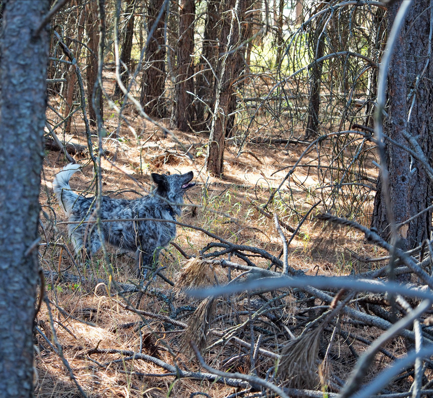 Finally she stopped on the pine needles to rest. (We were both ready.)