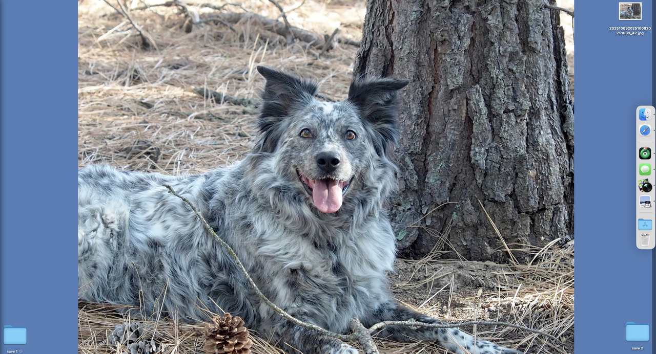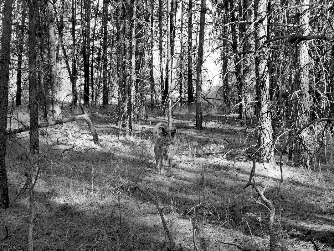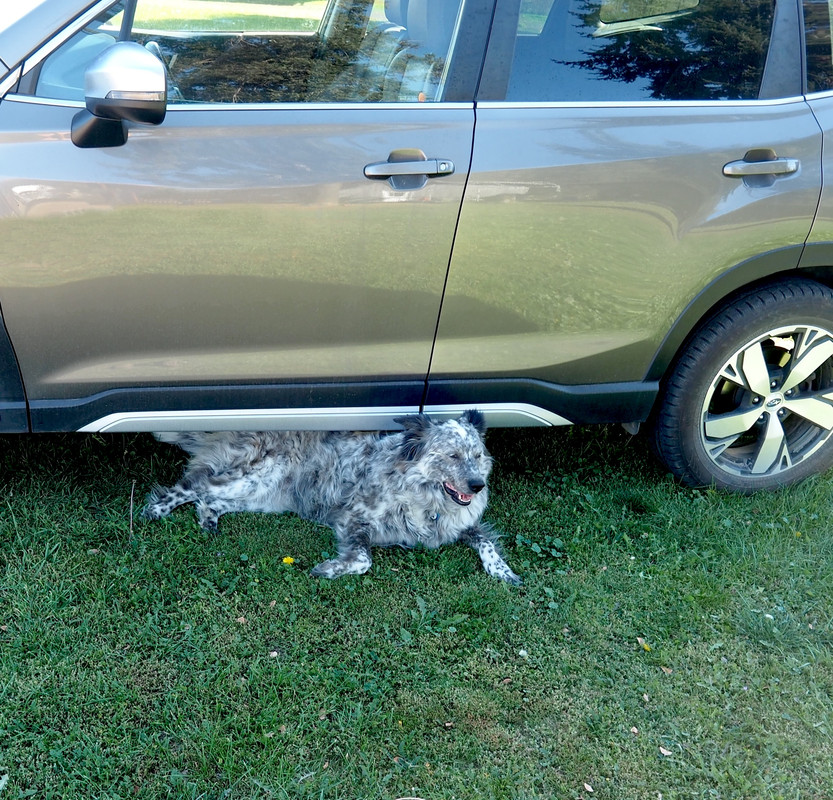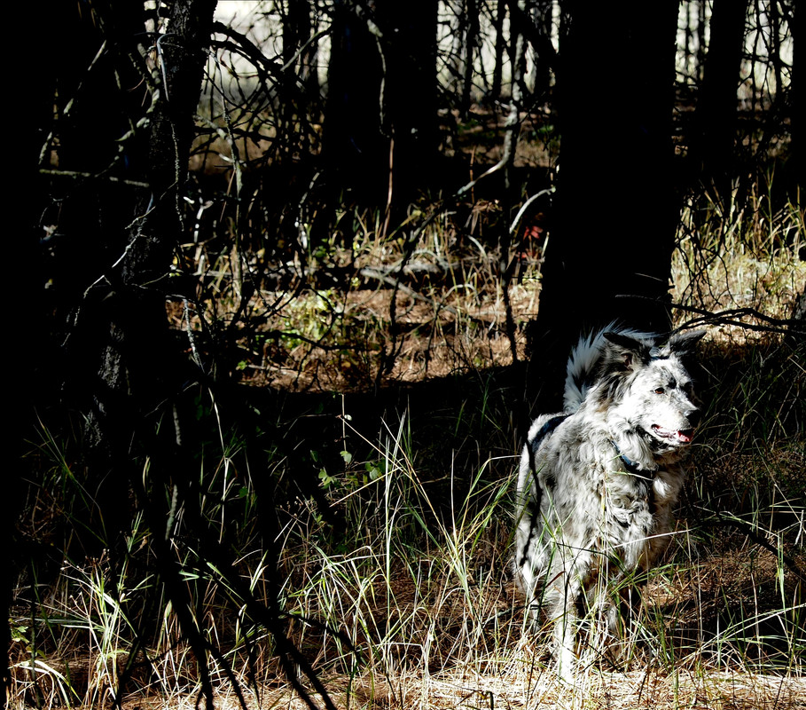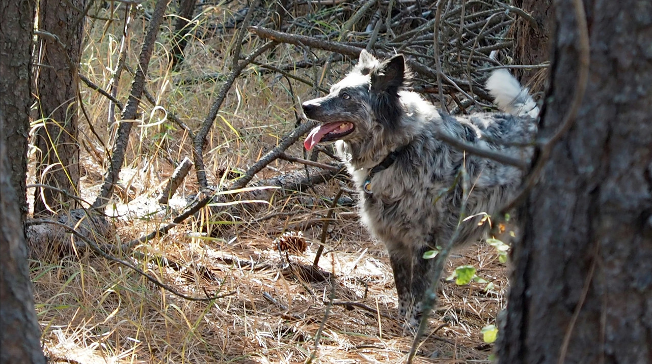 Finally she stopped on the pine needles to rest. (We were both ready.)
