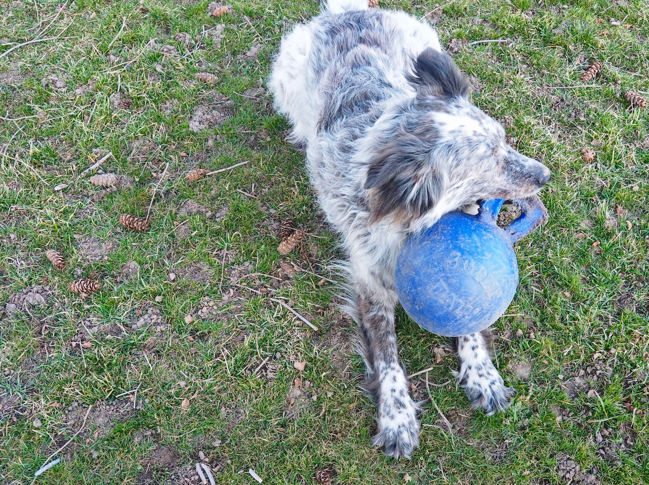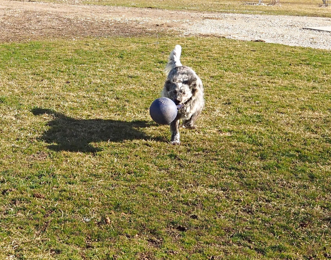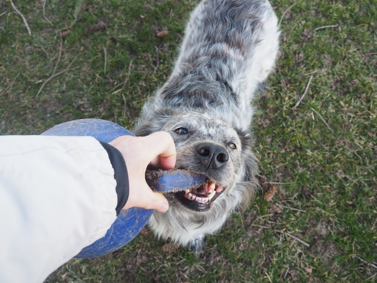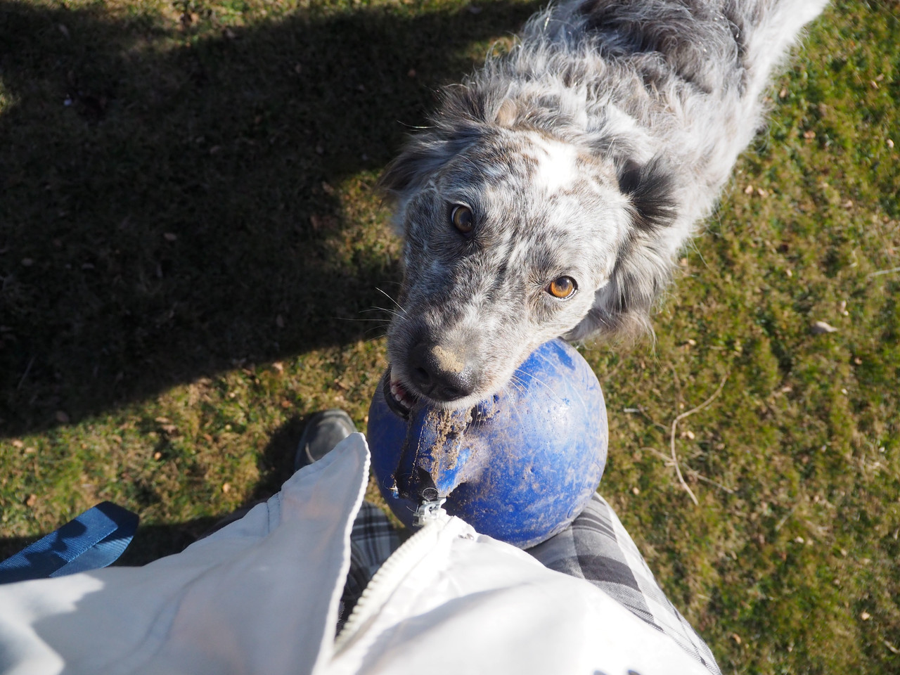 found by That Dog. She wanted to lick his head, he did not want her to.