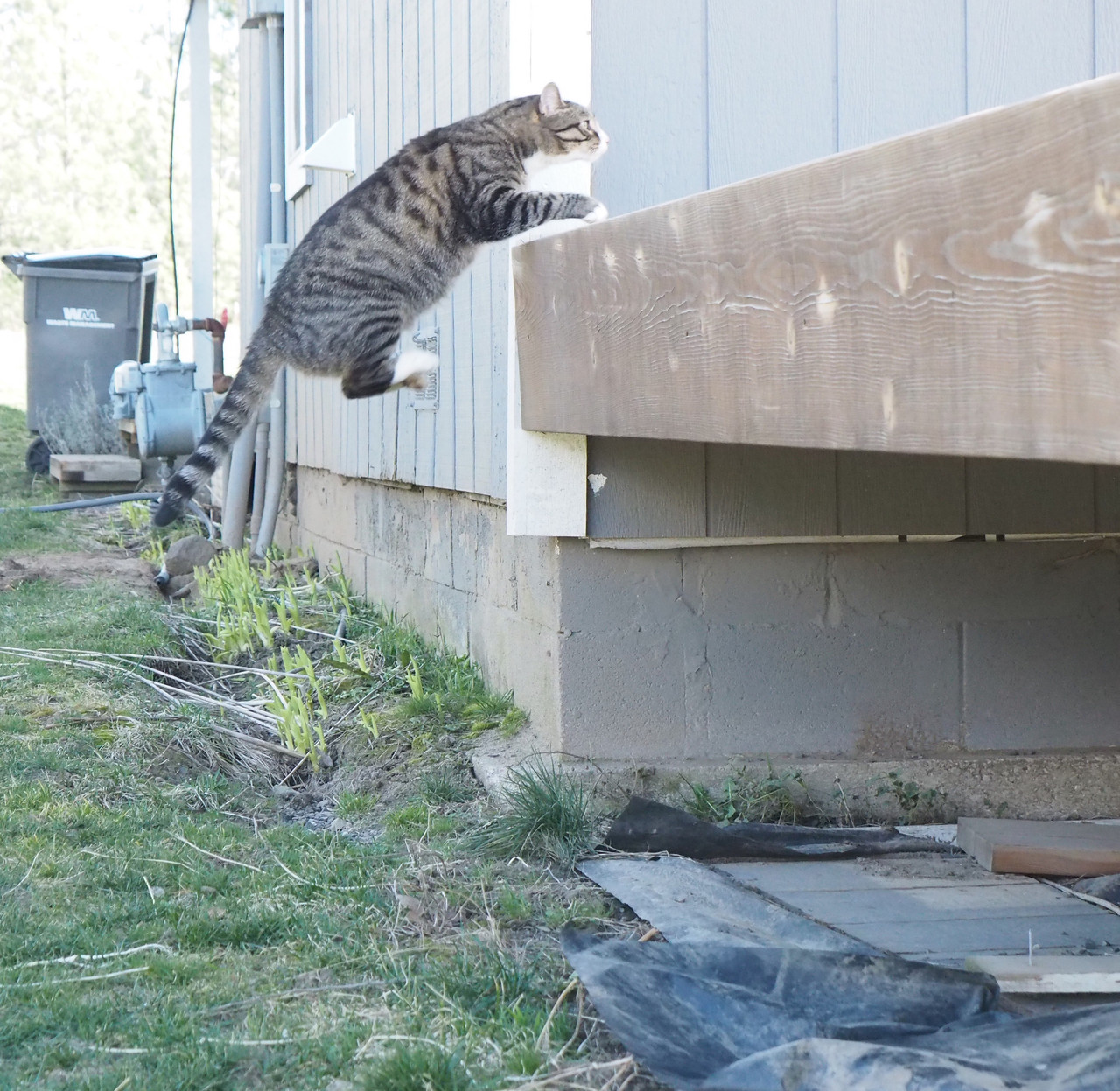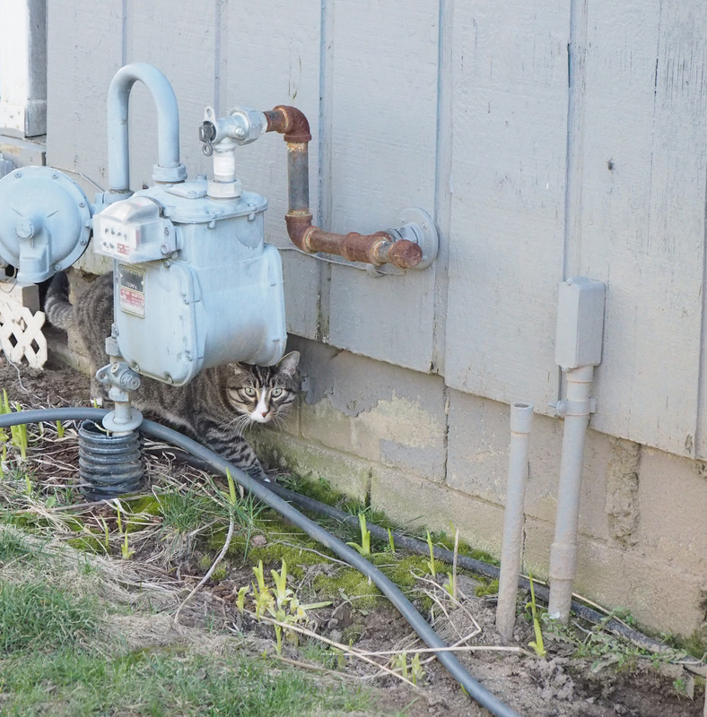 So KC slipped 'neath the gas meter, leaped back onto the front porch,
