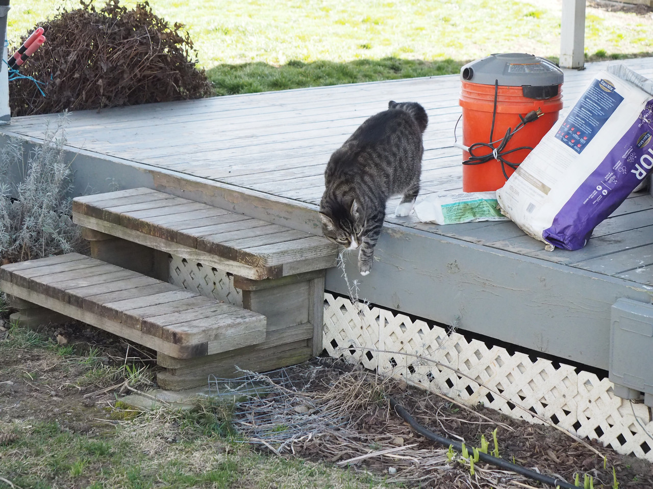 KC ~ He went for a walk recently. Started out on the front porch and sat down for a bit on the south-side porch.