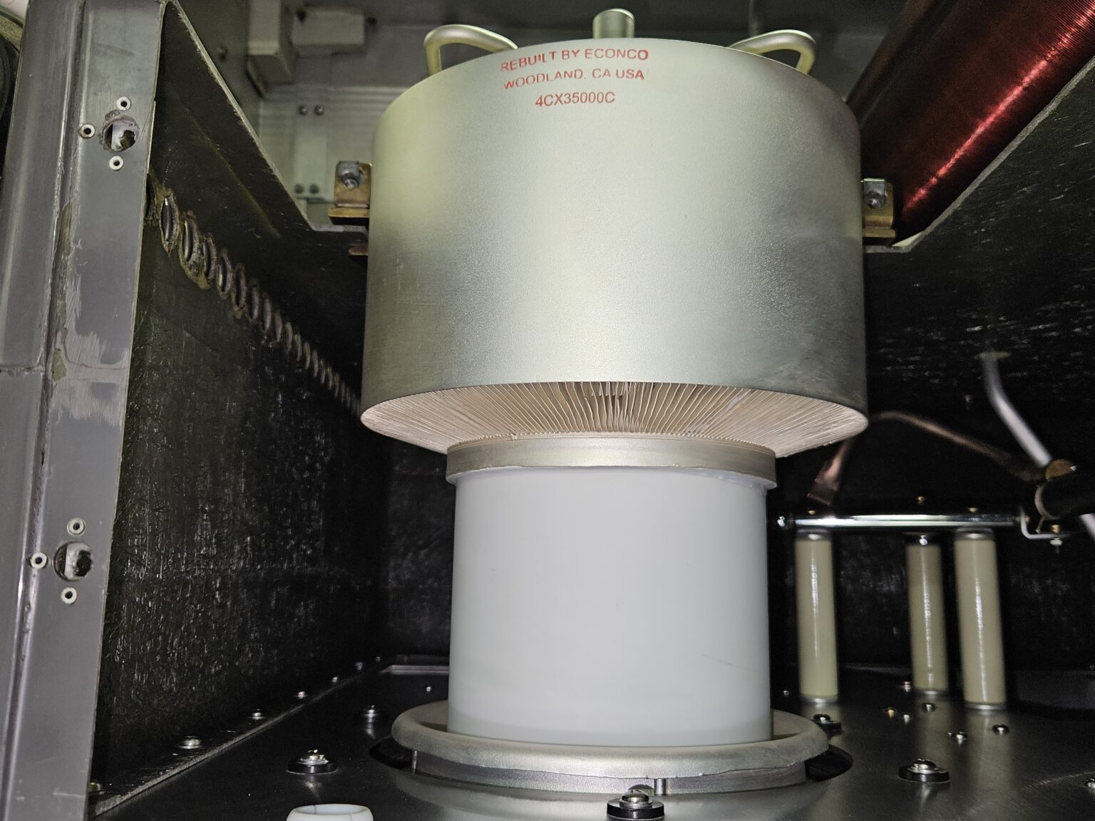 A freshly rebuilt Econco 4CX35000C during installation into the MW-50A at WTAR in 2024.