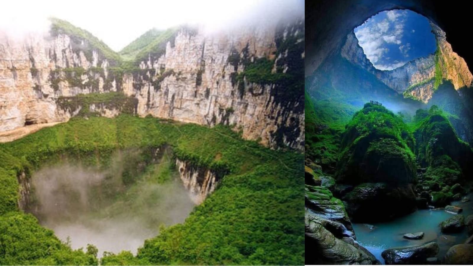 This extraordinary hole reportedly measures a whopping 300 metres (1,000 feet) in length, 150 metres (500 feet) in width and is more than 190 metres (630 feet deep). It is located in Chinas southwestern karst landscape and is now one of 30 such holes known as tiankeng which translates as heavenly pits in the region.